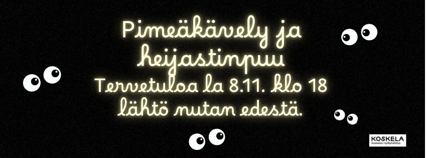 Klo 18 nuorisotalon edestä lähdetään kävelyretkelle, jossa nautitaan hiljaisuudesta ja pimeästä Koskelan kallioilla. Ota mukaan taskulamppu tai lyhty.